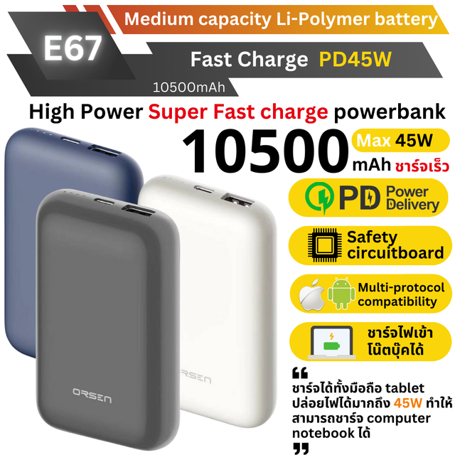 ใหม่! E67 Powerbank 10500mAh Fast Charge PD 45W สินค้าส่งฟรี!