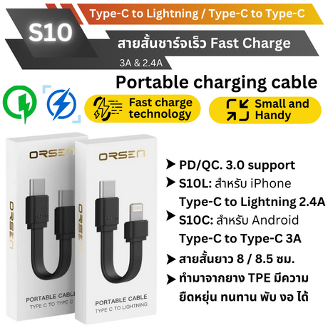 สาย S10 สายสั้น Type-C ชาร์จเร็ว ยาว 8 cm จัดส่งฟรี!
