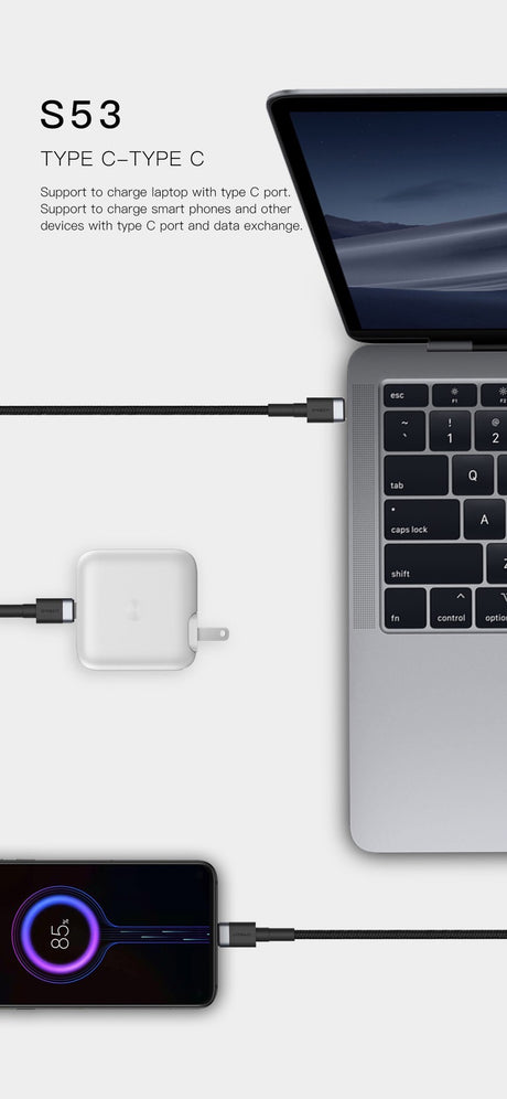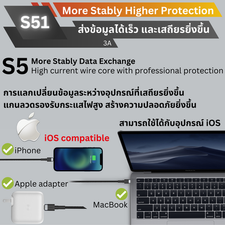 สาย S6 Type-C to Type-C 5A ชาร์จเร็ว PD 100W ยาว 1.5 เมตร จัดส่งฟรี!