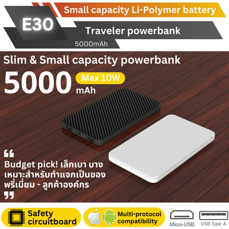 โปรโมชั่น! E30 5000 mAh สีดำ / Black 1 ชิ้น แถมสายชาร์จ ส่งฟรี!