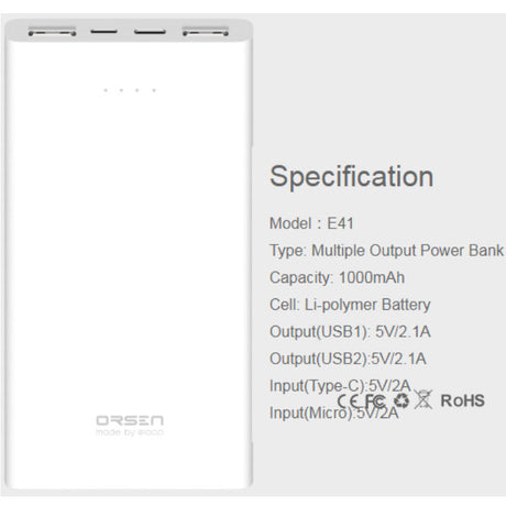 สีใหม่! E41 Powerbank 10000 mAh แถมซอง & สายชาร์จ ส่งฟรี!