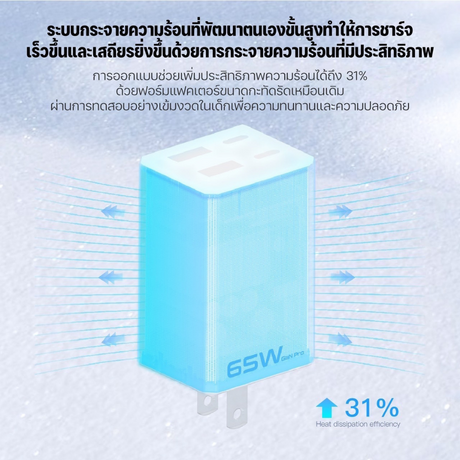 - Wire & Cable : สายชาร์จก็สามารถร้อนได้ด้วยเช่นกัน ต่อให้ใช้ Adapter ที่มีกำลังจ่ายไฟสูงถึง 65W แต่ถ้าสายชาร์จที่ใช้นั้นเป็นแบบ 1A ก็จะไม่ช่วยให้การชาร์จเร็วเกิดขึ้น สายชาร์จก็เปรียบเสมือนท่อนํ้า ต่อให้มีแรงดันมากแต่ไหน ปริมาณในการจ่ายนํ้าก็ไม่สามารถทำได้เร็วเท่าที่ควร เพราะฉะนั้นหากลูกค้ามี Adapter ที่จ่ายไฟได้เร็วแล้ว ก็ควรเลือกใช้สายชาร์จที่มีความสามารถในการรับรองการจ่ายไฟเร็วด้วยเช่นกัน อย่างสายชาร์จรุ่น S6, S7, S8, หรือ S51 ชึ่งรองรับการชาร์จเร็ว ยกตัวอย่างสายชาร์จรุ่น S6 รองรับกระแสไฟสูงถึง 5A 100W สามารถนำไปชาร์จได้หลากหลายอุปกรณ์ และเป็น data transmission ได้อีกด้วย