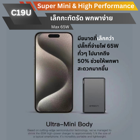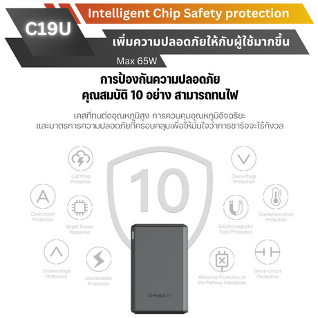 - Adapter : อะแดปเตอร์ ที่มีระบบชาร์จเร็วจะต้องมีกำลังจ่ายไฟที่ 20W ขึ้นไป ด้วยกำลังจ่ายไฟที่สูงจะช่วยให้การทำงานลดน้อยลง ความร้อนก็จะลดน้อยลงด้วย ยกตัวอย่างเช่น Eloop E14 Ultra สามารถรับกำลังไฟเข้าที่ 45W และถ้านำ adapter ที่จ่ายไฟ 10W มาใช้ก็จะทำให้ adapter ทำงานหนักขั้นสูงสุดและร้อน เพราะ powerbank กำลังเรียกไฟที่มาก และ Adapter รุ่นเก่าก็จะไม่มีระบบรักษาความร้อนเหมือน adapter รุ่นใหม่ เพราะฉะนั้น adapter ที่มีการจ่ายไฟยิ่งสูงยิ่งดี อย่าง Adapter C12 65W ซึ่งสามารถชาร์จได้ทั้งพาวเวอร์แบงค์ โทรศัพท์มือถือ แท็บเล็ต computer notebook / laptop ลูกค้าไม่ต้องกังวลว่า adapter ที่มีกำลัง watt สูงจะไปใช้อุปกรณ์อื่นไม่ได้ เพราะ Adapter ของ Eloop & Orsen มีชิปที่ช่วยปรับความต้องการของกำลังไฟที่ใช้ และปลอดภัย เพราะถ้าเกิดเหตุการณ์ไฟฟ้าลัดวงจร หรือร้อนเกินอัตรา fuse ก็จะทำหน้าที่ตัดไฟทันที